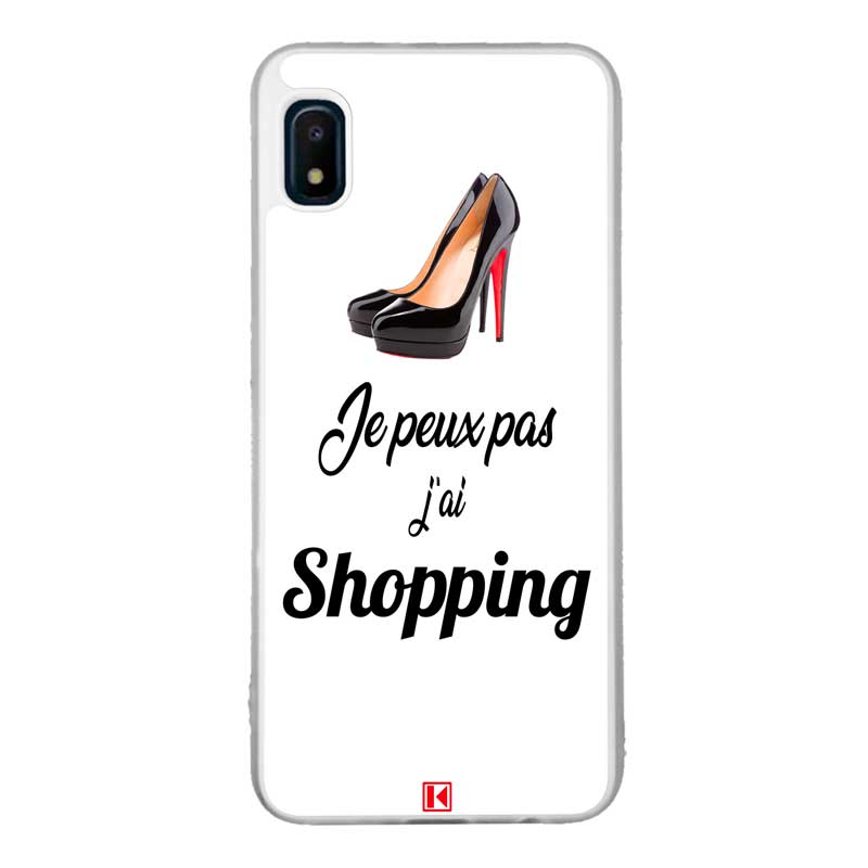 Coque Galaxy A10e avec design “Je peux pas j’ai Shopping”.