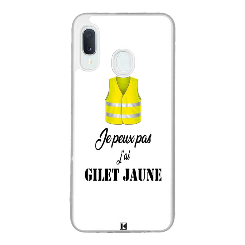 Coque Galaxy A20e avec design “Je peux pas j’ai Gilet jaune”.