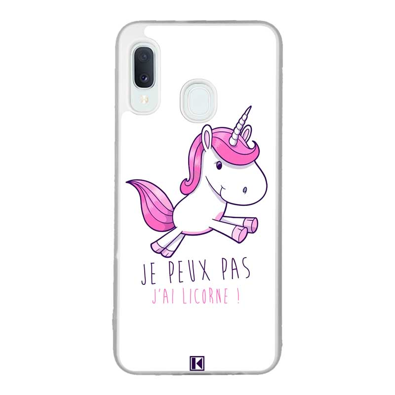 Coque Galaxy A20e avec design “Je peux pas j’ai Licorne”.