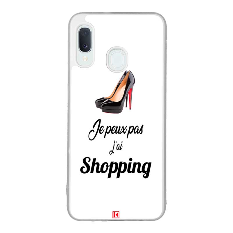 Coque Galaxy A20e avec design “Je peux pas j’ai Shopping”.