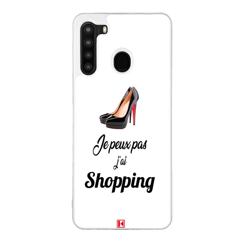 Coque Galaxy A21 avec design “Je peux pas j’ai Shopping”.
