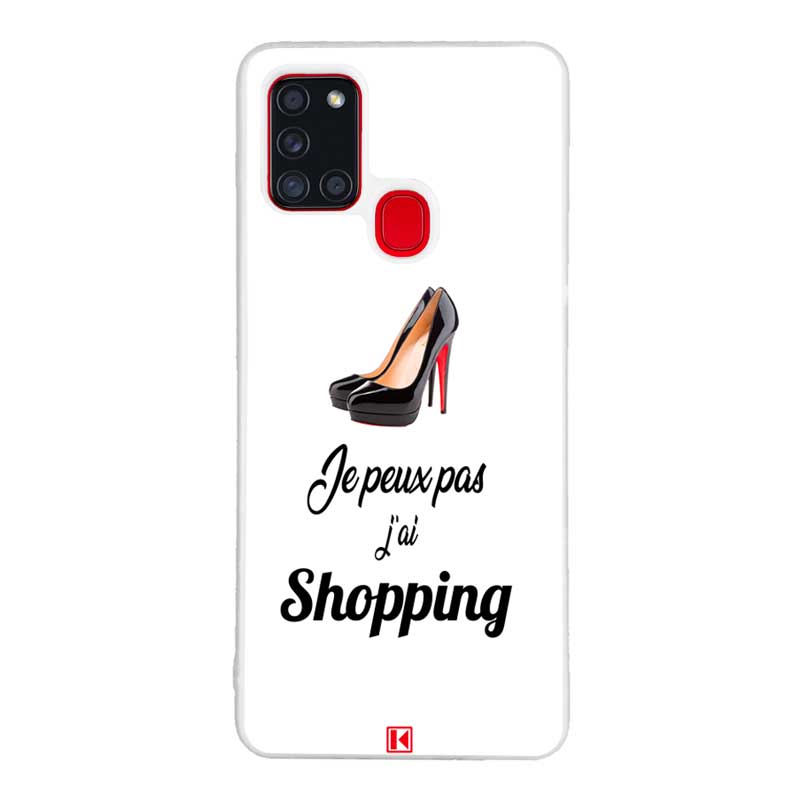 Coque Galaxy A21s avec design “Je peux pas j’ai Shopping”.