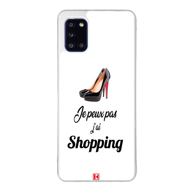 Coque Galaxy A31 avec design “Je peux pas j’ai Shopping”.