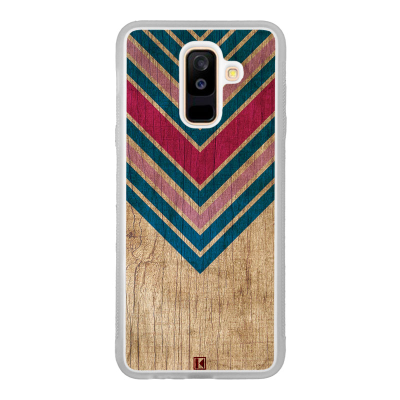 Coque Galaxy A6 Plus avec design “Chevron on wood”.