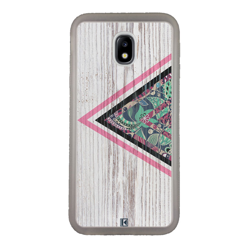 Coque Galaxy J3 2017 avec design “Triangle on white wood”.