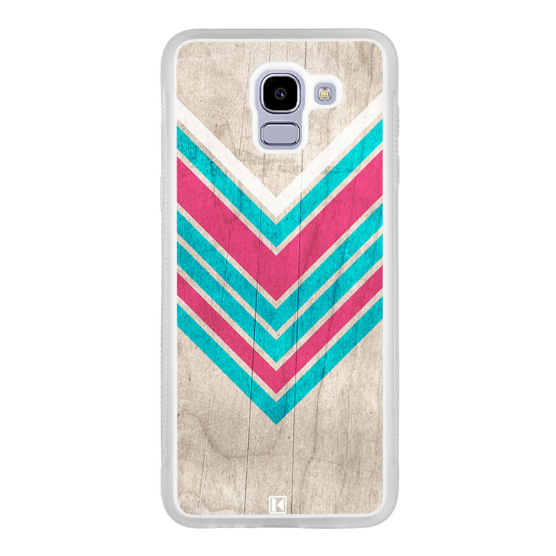 Coque Galaxy J6 2018 avec design “Chevron on white wood”.