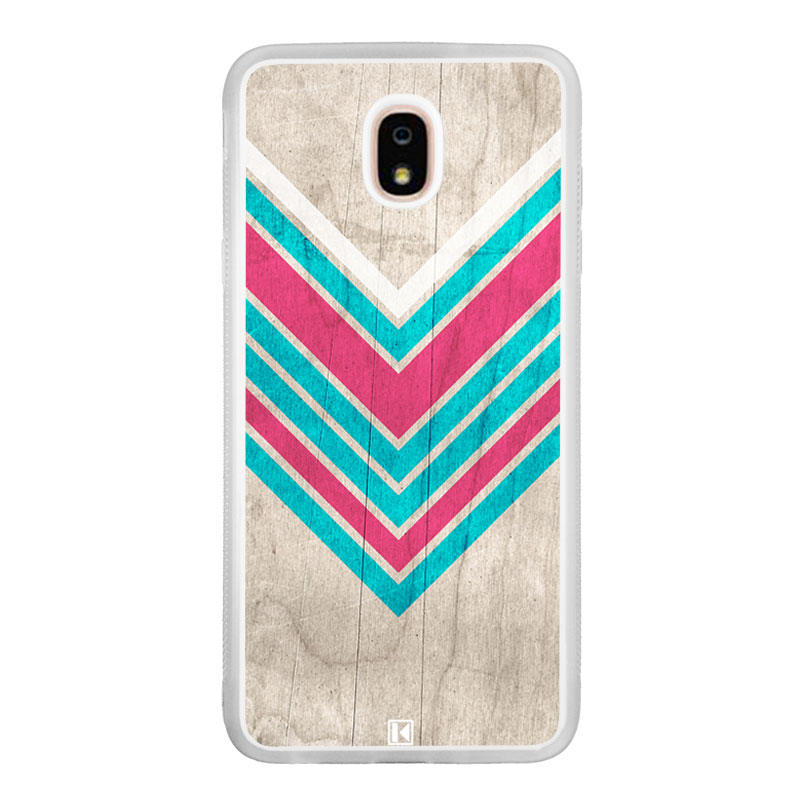 Coque Galaxy J7 2018 avec design “Chevron on white wood”.