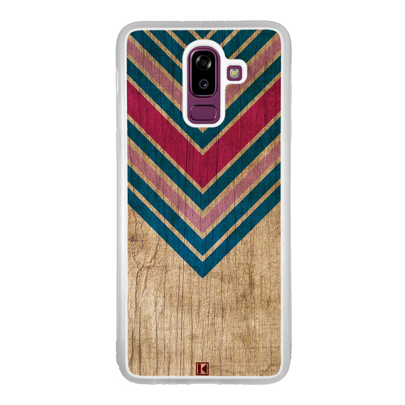 Coque Galaxy J8 2018 avec design “Chevron on wood”.
