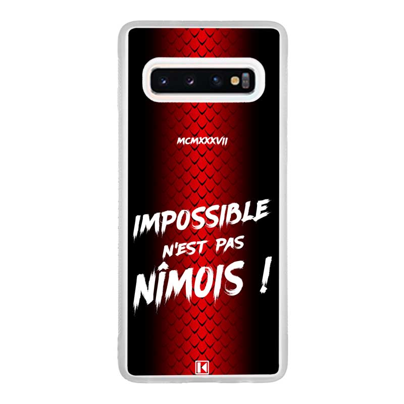 Coque Galaxy S10 avec design “Impossible n’est pas Nîmois”.