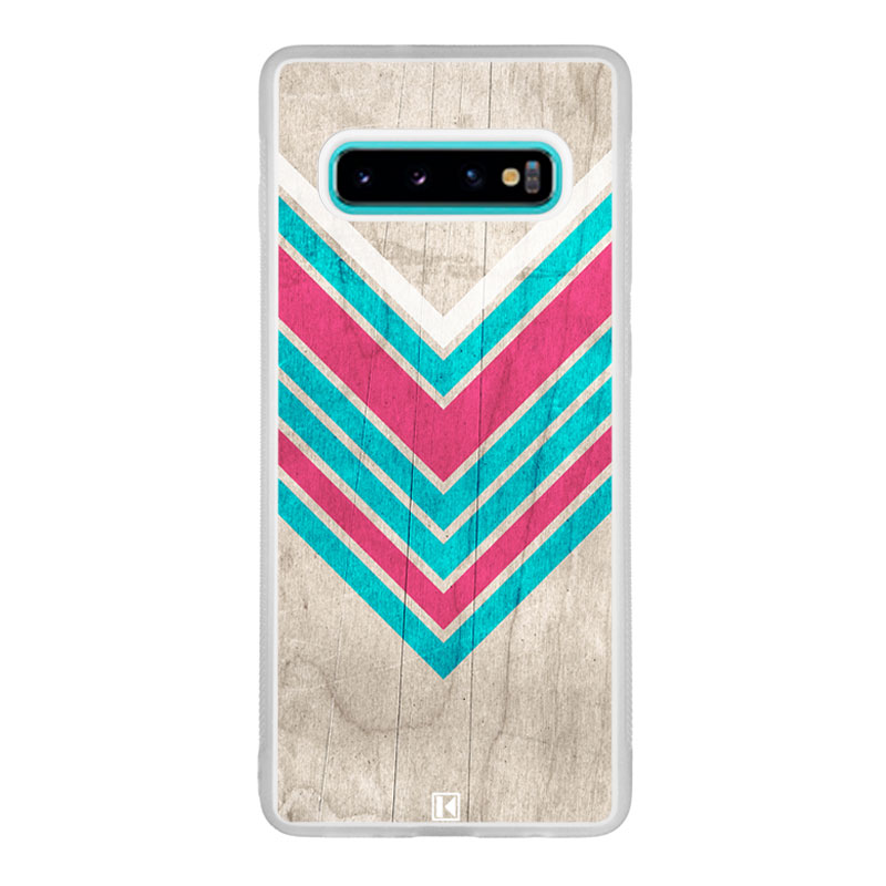 Coque Galaxy S10 Plus avec design “Chevron on white wood”.