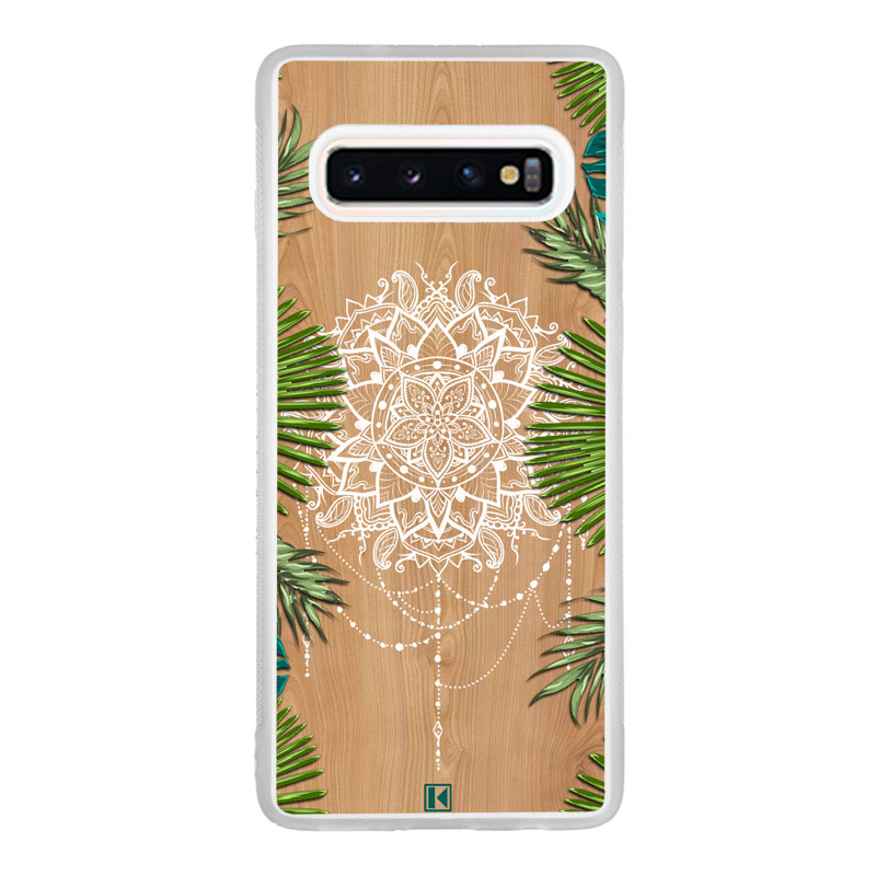 Coque Galaxy S10 avec design “Tropical wood mandala”.
