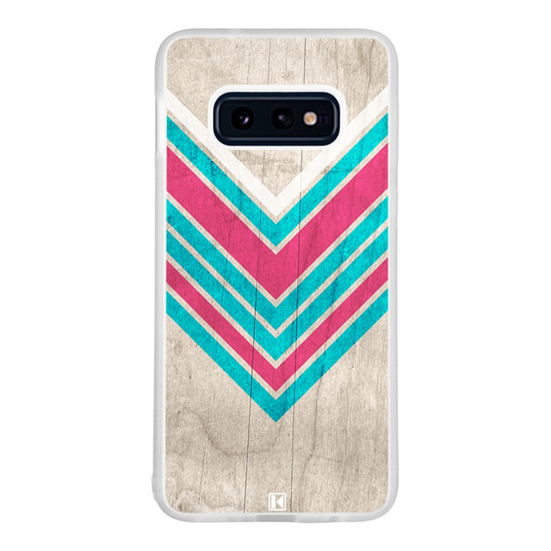 Coque Galaxy S10e avec design “Chevron on white wood”.