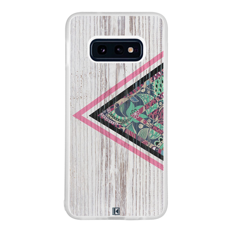 Coque Galaxy S10e avec design “Triangle on white wood”.