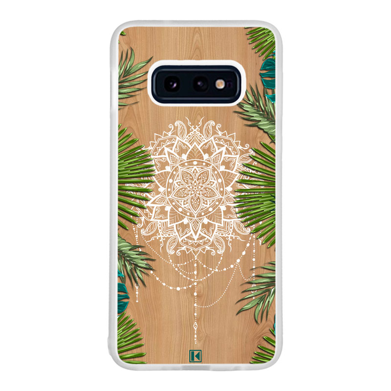 Coque Galaxy S10e avec design “Tropical wood mandala”.
