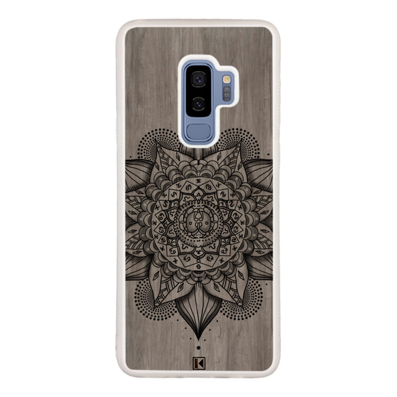 Coque Galaxy S9 Plus avec design “Mandala on wood”.