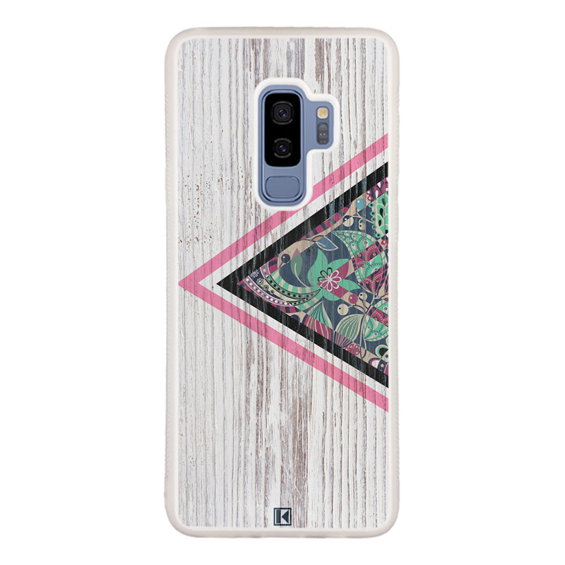 Coque Galaxy S9 Plus avec design “Triangle on white wood”.