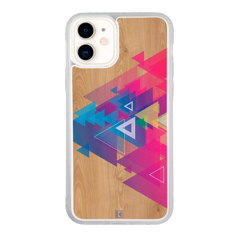 Coque iPhone 11 avec design “Multi triangle on wood”.