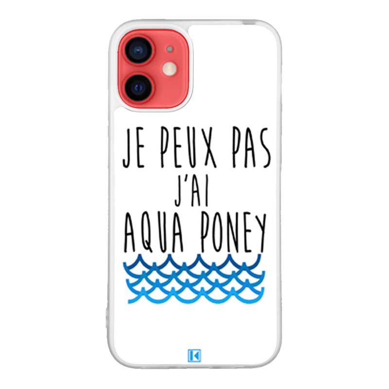 Coque iPhone 12 Mini avec design “Je peux pas j’ai aqua poney”.