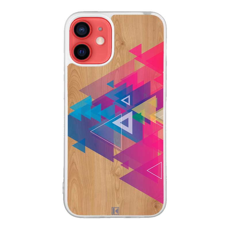 Coque iPhone 12 Mini avec design “Multi triangle on wood”.