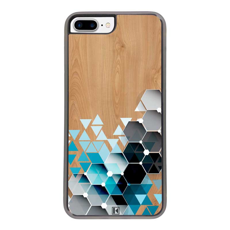 Coque iPhone 7 Plus / 8 Plus avec design “Blue triangles on wood”.
