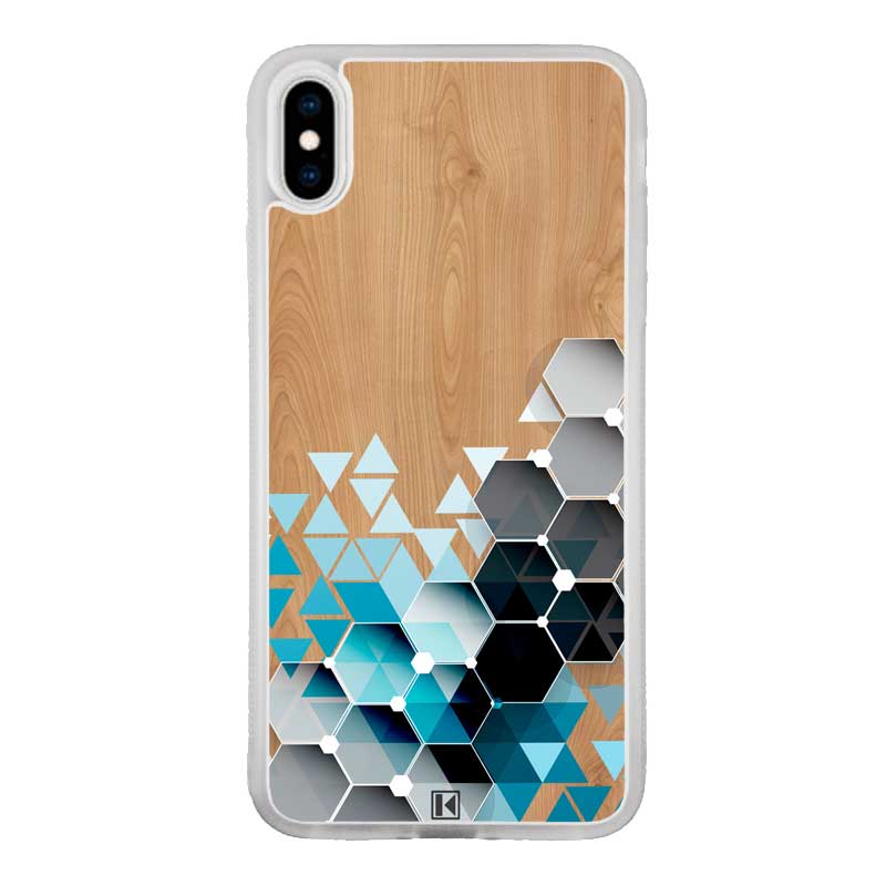 Coque iPhone X / Xs – Blue triangles on wood