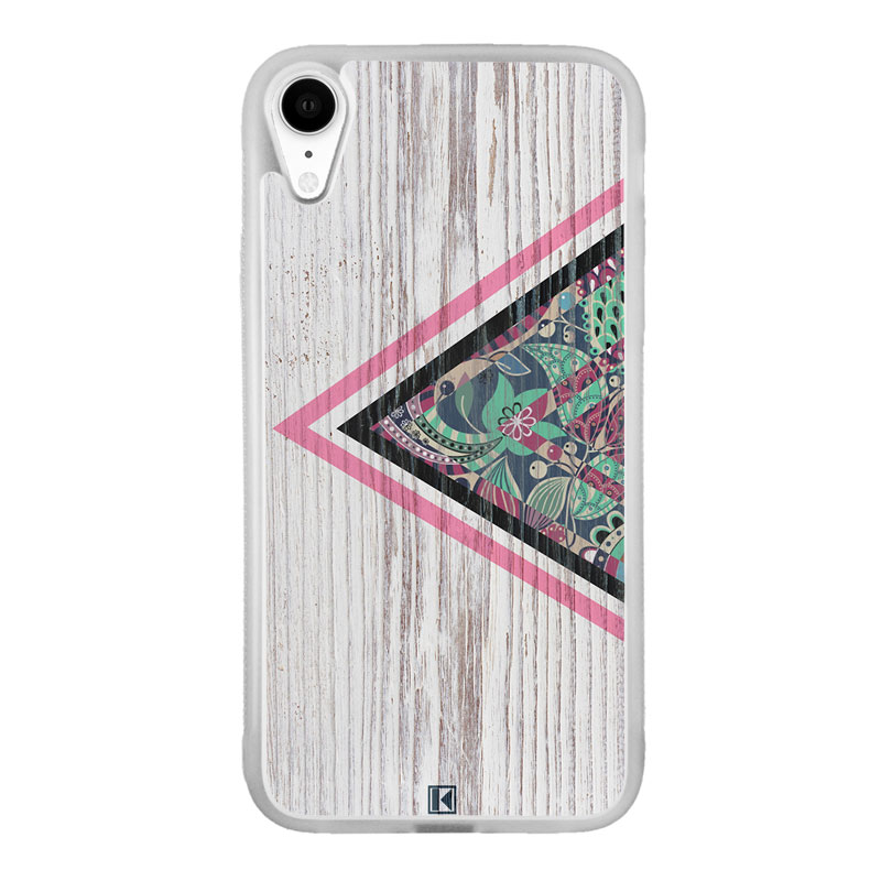 Coque iPhone Xr avec design “Triangle on white wood”.