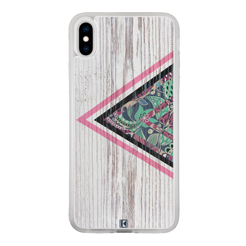 Coque iPhone Xs Max avec design “Triangle on white wood”.