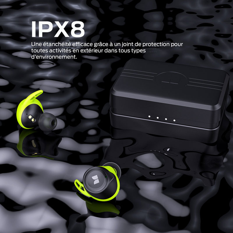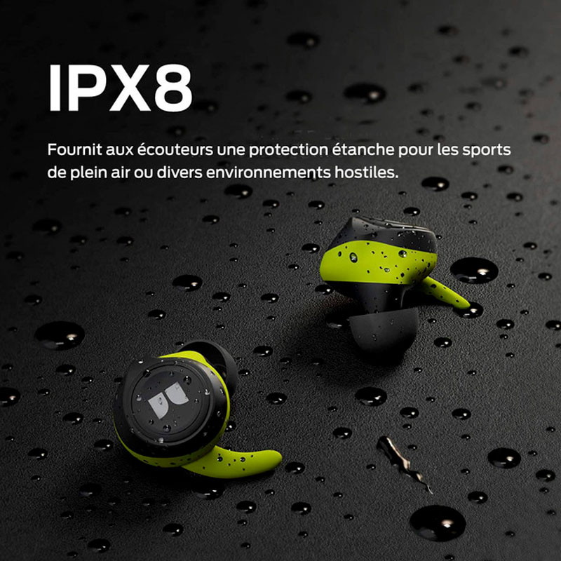 - Spécificités : micro-casque, résistant à la sueur, hydrophobe