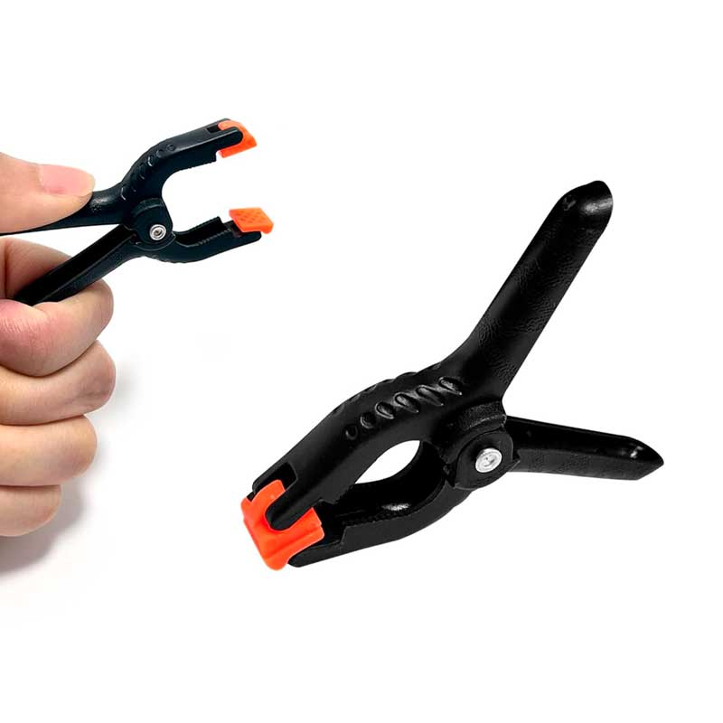 Les pinces de fixation permettent de maintenir fermement l’écran contre le châssis pendant le séchage de l’adhésif, évitant ainsi tout déplacement ou mauvaise prise.