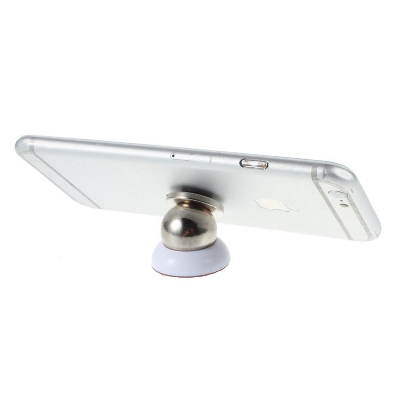 Un système innovant composé d’un aimant ultra puissant fixé sur une boule en acier et d’une plaque magnétique à coller au dos de votre smartphone.