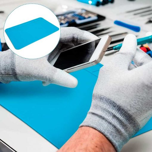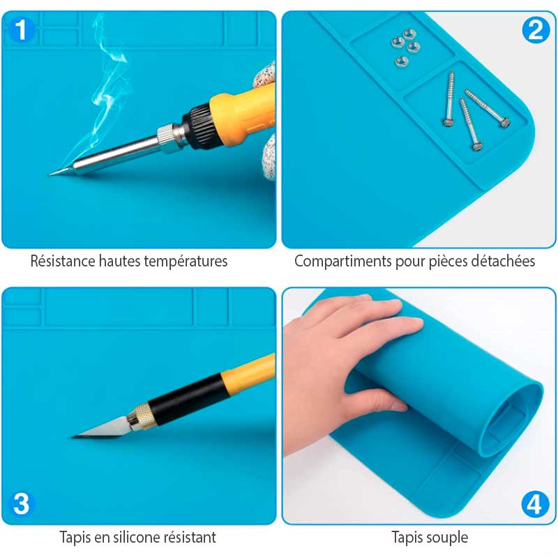 Le tapis de réparation en silicone offre un espace sécurisé et organisé, idéal pour manipuler de petites pièces sans risque de perte.