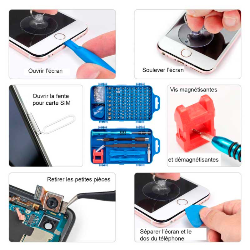 Les 12 outils de démontage inclus facilitent l’ouverture des appareils sans les abîmer, assurant un travail précis et efficace.