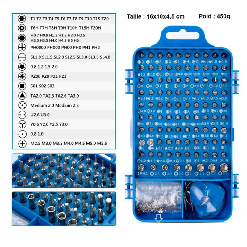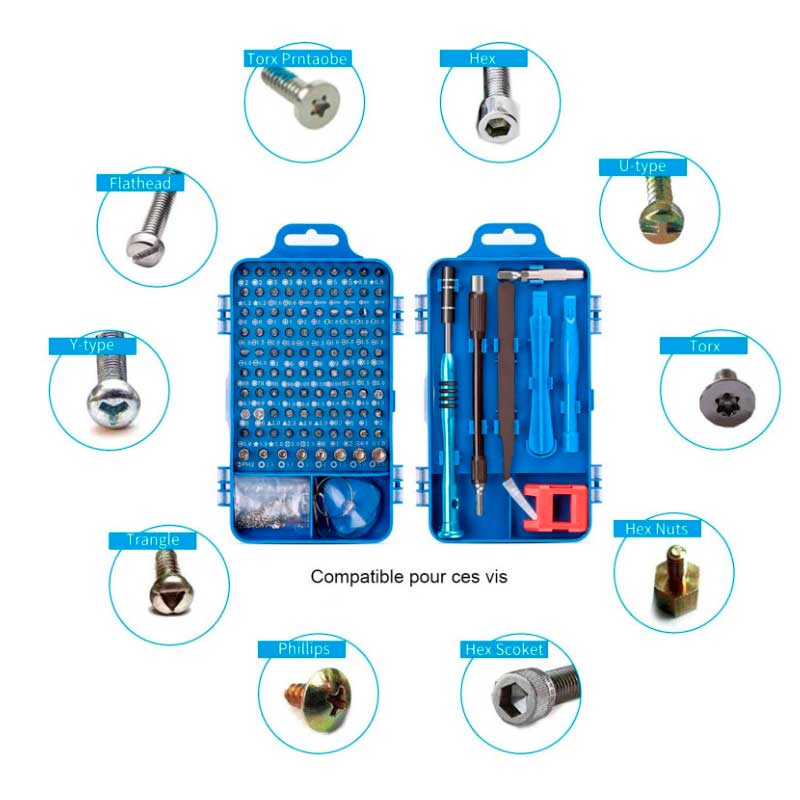 Que vous soyez un professionnel ou un passionné de réparation, ce kit de tournevis de précision 110 en 1 est l’outil idéal pour démonter et réparer smartphones, tablettes, ordinateurs et autres appareils électroniques.